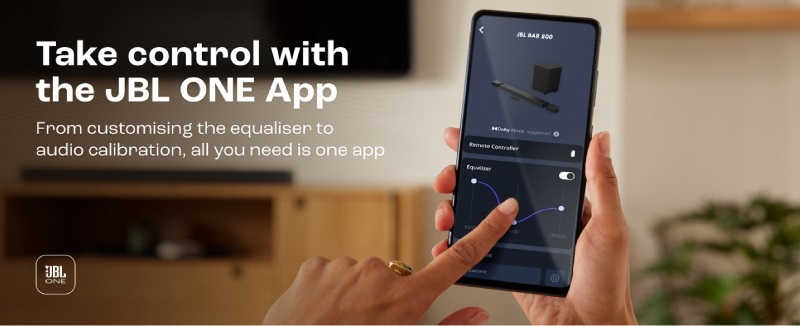 Sản phẩm được trang bị PureVoice – công nghệ xử lý giọng thoại thông minh, giúp giọng nói trở nên rõ ràng hơn ngay cả trong những phân cảnh hành động dồn dập. Nhờ vậy, bạn sẽ không bỏ lỡ bất kỳ chi tiết hội thoại nào trong phim. Ngoài ra, JBL còn tích hợp ứng dụng JBL ONE, cho phép người dùng dễ dàng tinh chỉnh EQ, thay đổi chế độ nghe, cập nhật phần mềm trực tiếp trên điện thoại để tối ưu trải nghiệm cá nhân hóa.