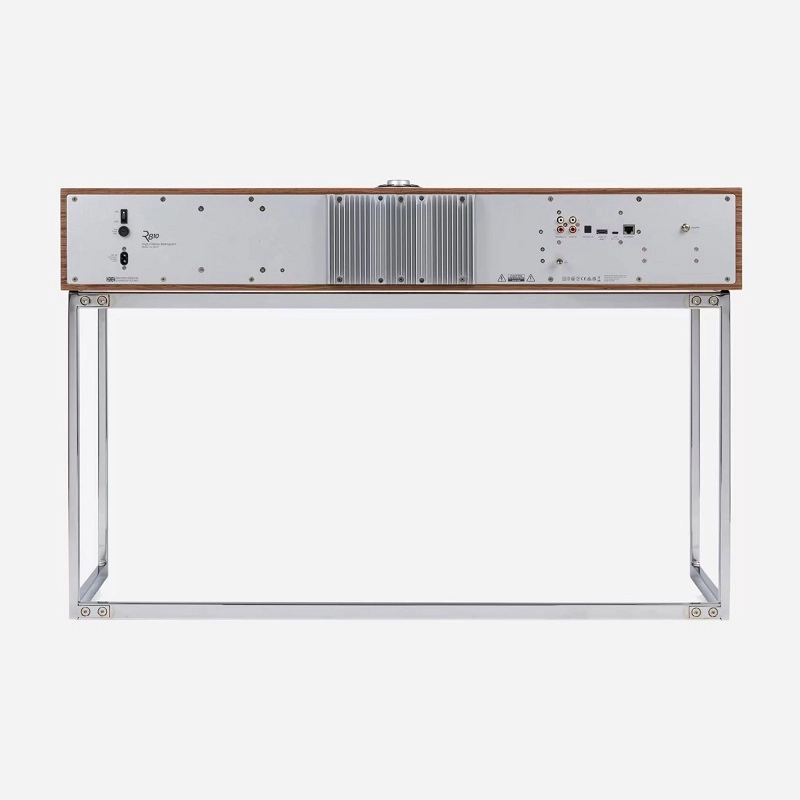 Ruark R810 được hoàn thiện tỉ mỉ như một món đồ nội thất nghệ thuật. Thân loa làm từ gỗ veneer cao cấp, phủ lớp vân tự nhiên, kết hợp lưới tản nhiệt thủ công và chân đế mạ crôm bóng, tạo nên phong thái sang trọng và tinh tế.