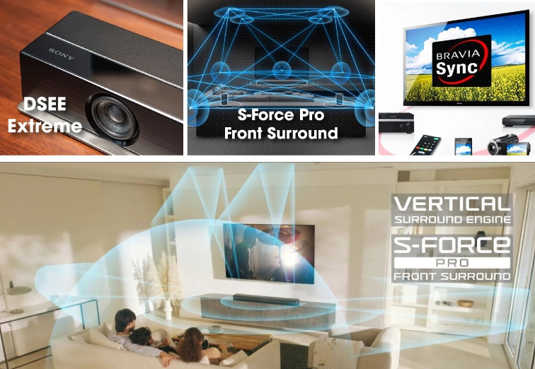 - Bravia Sync: Kết nối đồng bộ với TV Sony BRAVIA cho phép điều khiển cả hệ thống chỉ với 1 chiếc điều khiển duy nhất. Hoặc đồng bộ bật tắt chỉ với 1 lần nhấn nút. Đây không phải công nghệ tăng cường âm thanh nhưng nó đem lại tiện ích và nhanh gọn cho người dùng kiểm soát loa dễ dàng mà không mất quá nhiều thời gian thao tác.