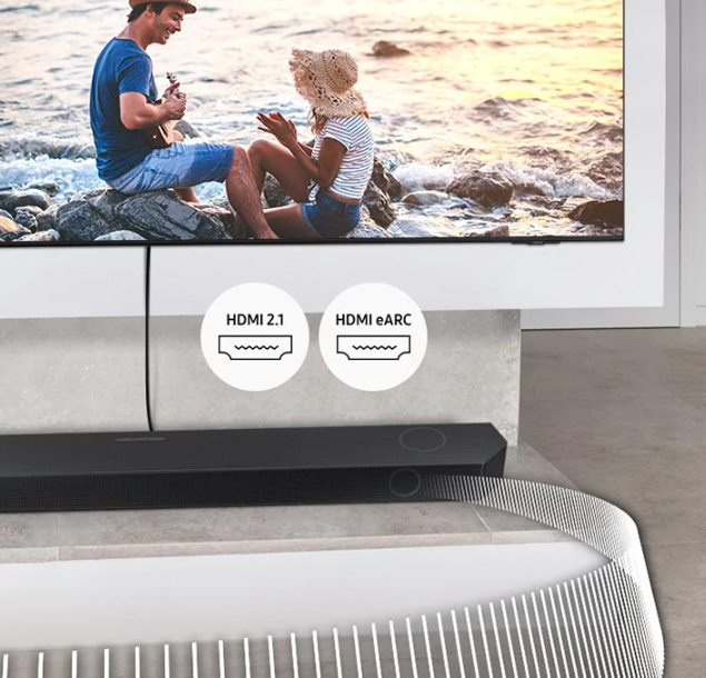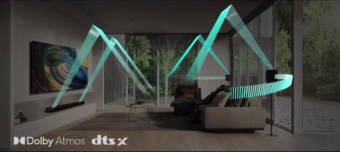 Hỗ trợ HDMI 2.1, HDMI eARC, truyền tải âm thanh 3D Dolby Atmos nguyên bản với tốc độ 4K@120Hz. Tích hợp Google Assistant, Chromecast, Apple AirPlay cùng tính năng Tap Sound giúp phát nhạc chỉ với một chạm.
