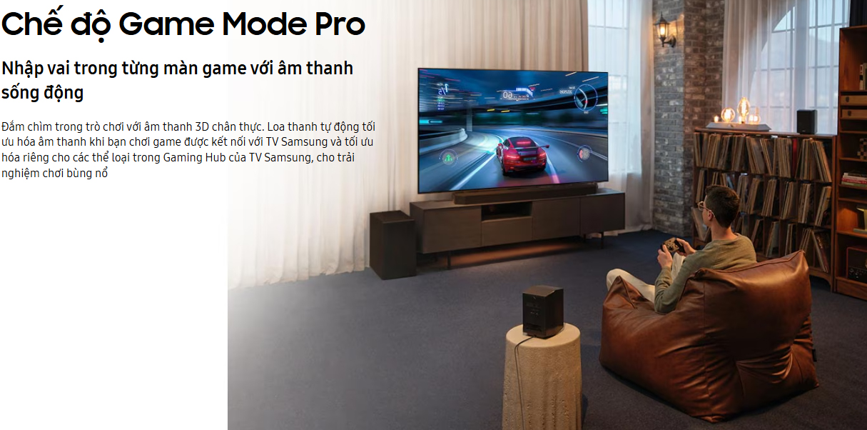 Tối ưu âm thanh cho game, mang lại trải nghiệm nhập vai sống động. Loa tự động điều chỉnh hiệu ứng dựa trên nội dung và thể loại game trong Samsung Gaming Hub.