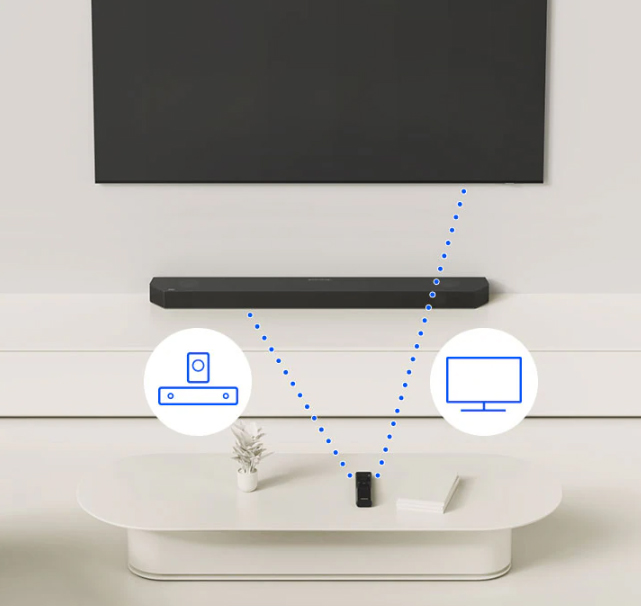 Chỉ cần One Remote Control, bạn có thể điều khiển toàn bộ hệ thống. Kết nối Wi-Fi hoặc Bluetooth với TV nhanh chóng, đồng bộ hoàn hảo âm thanh và hình ảnh.