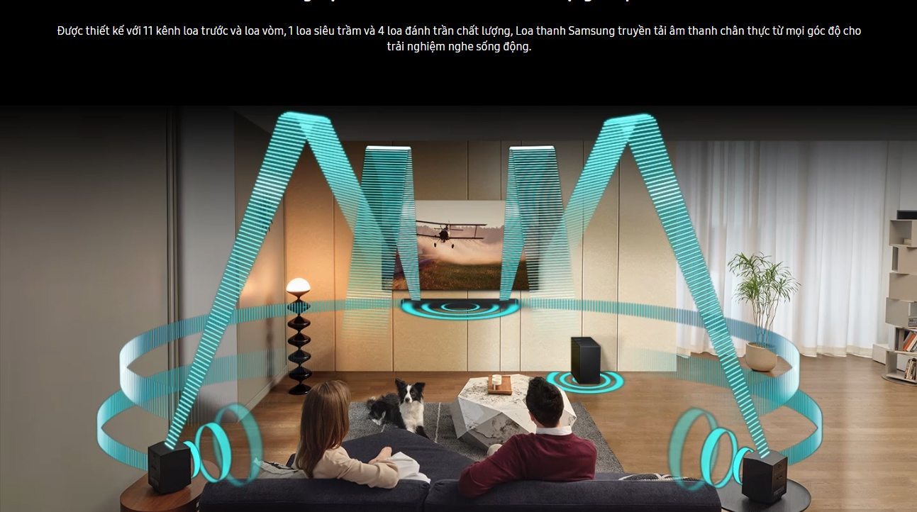 Bộ loa vệ tinh không dây kèm theo giúp âm thanh lan tỏa khắp phòng, kể cả từ trên cao. Mỗi hiệu ứng, lời thoại và âm nhạc đều trở nên sống động, chân thực như trong rạp phim.