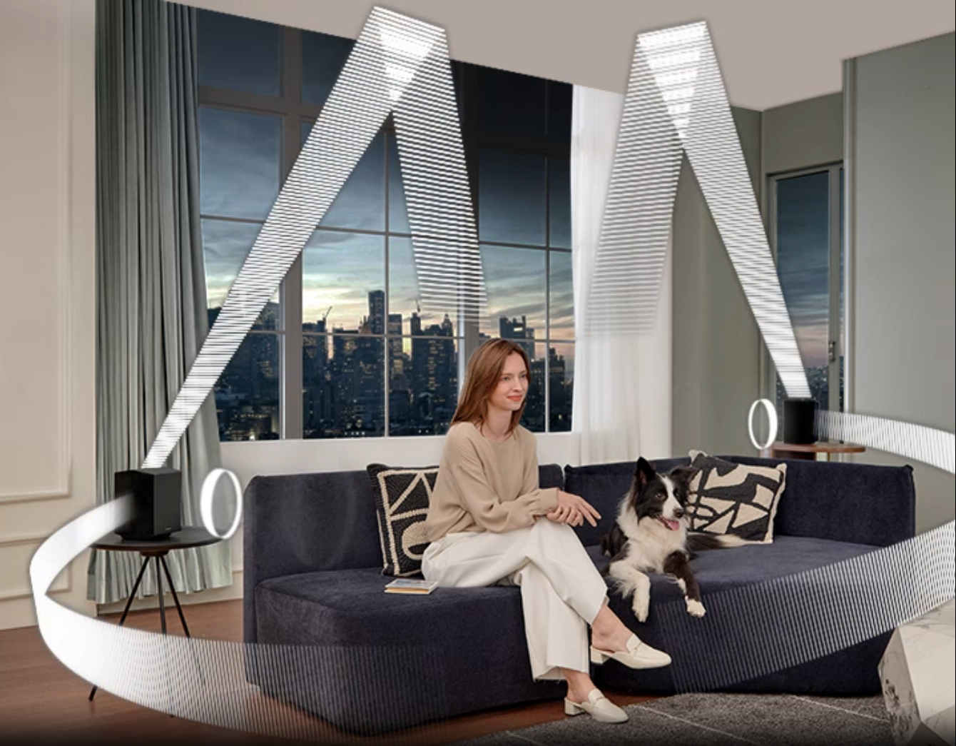 Nhờ AI, loa thanh tự động phân tích cấu trúc phòng và điều chỉnh âm thanh phù hợp. Cả âm cao và âm trầm đều được tối ưu, đảm bảo chất lượng âm thanh đồng đều ở mọi vị trí trong phòng.