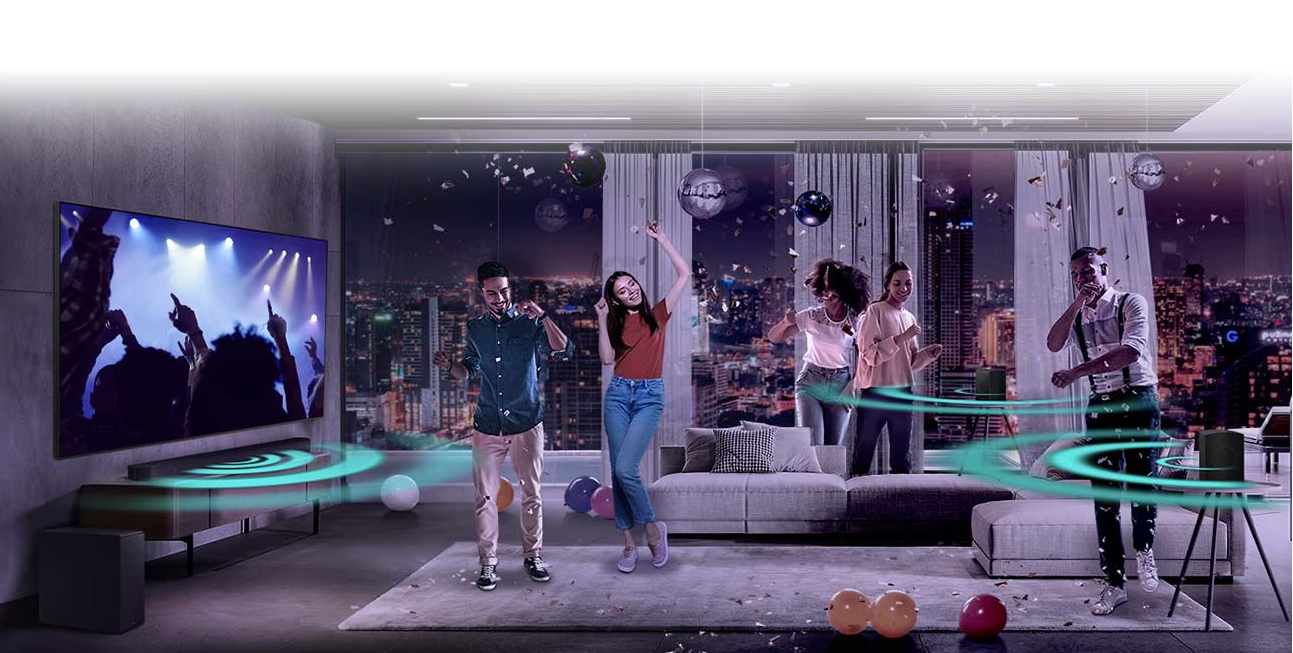 Q-Symphony cho phép loa thanh và loa TV phát đồng thời, tạo ra âm thanh mạnh mẽ và đồng nhất. Công nghệ AI tối ưu âm thanh qua tất cả các kênh, mang lại trải nghiệm nghe bùng nổ, lý tưởng cho phim ảnh, thể thao và âm nhạc.