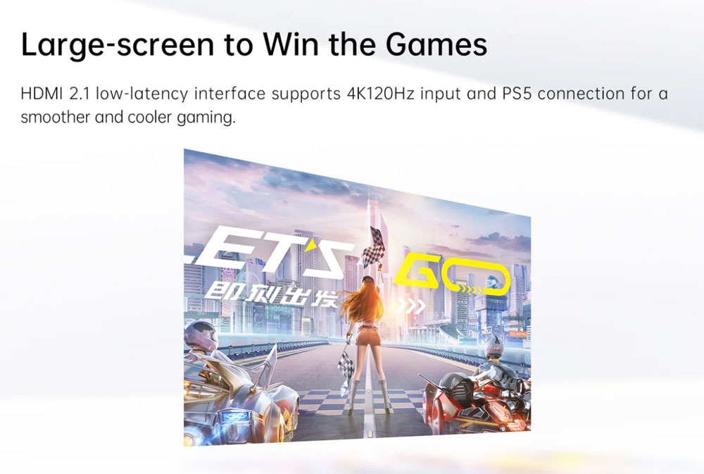 Hình ảnh Full HD 1080P với laser ba màu, khung hình 60–200 inch.