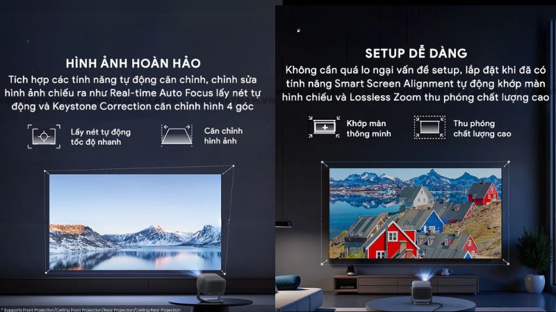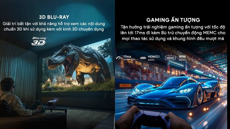 Máy chiếu sở hữu độ phân giải 4K UHD (3840×2160p), cho khả năng tái tạo từng chi tiết rõ ràng và sắc nét. Độ sáng đạt 1.100 ISO Lumens giúp hình ảnh hiển thị tốt ngay cả khi phòng có ánh sáng mạnh, trong khi tỷ lệ tương phản 1.600:1 tăng cường độ sâu và sự tách bạch giữa vùng sáng – tối. Nhờ đó, các bộ phim, video hay game đều được thể hiện đầy sống động và chân thực.