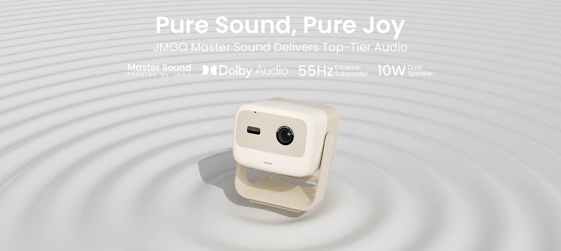 Không chỉ dừng lại ở hình ảnh, JMGO N1S Nano còn gây ấn tượng với hệ thống âm thanh 5W kép, được chứng nhận bởi Dolby Audio và công nghệ âm thanh độc quyền JMGO Master Sound.