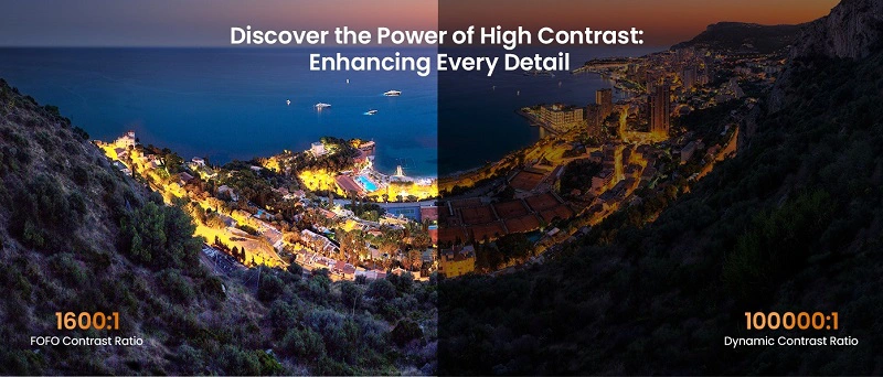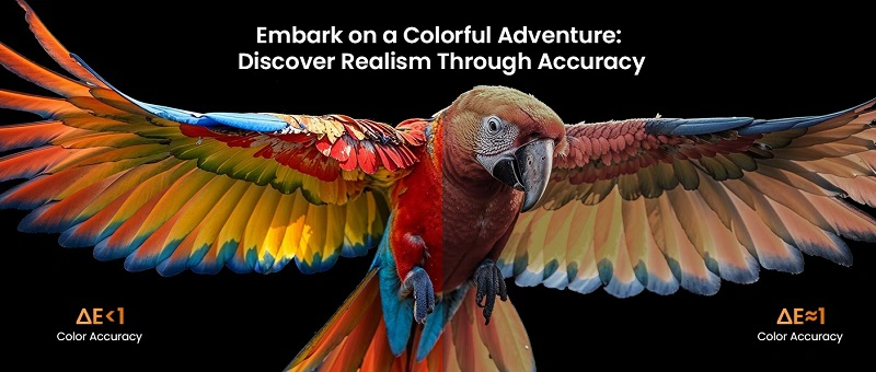 Công nghệ hiển thị của máy hỗ trợ tái tạo màu sắc chính xác ΔE < 1, kết hợp với tỷ lệ tương phản FOFO 1600:1 và tương phản động 100000:1, mang đến những khung hình sống động, rõ nét và chân thực đến từng chi tiết.