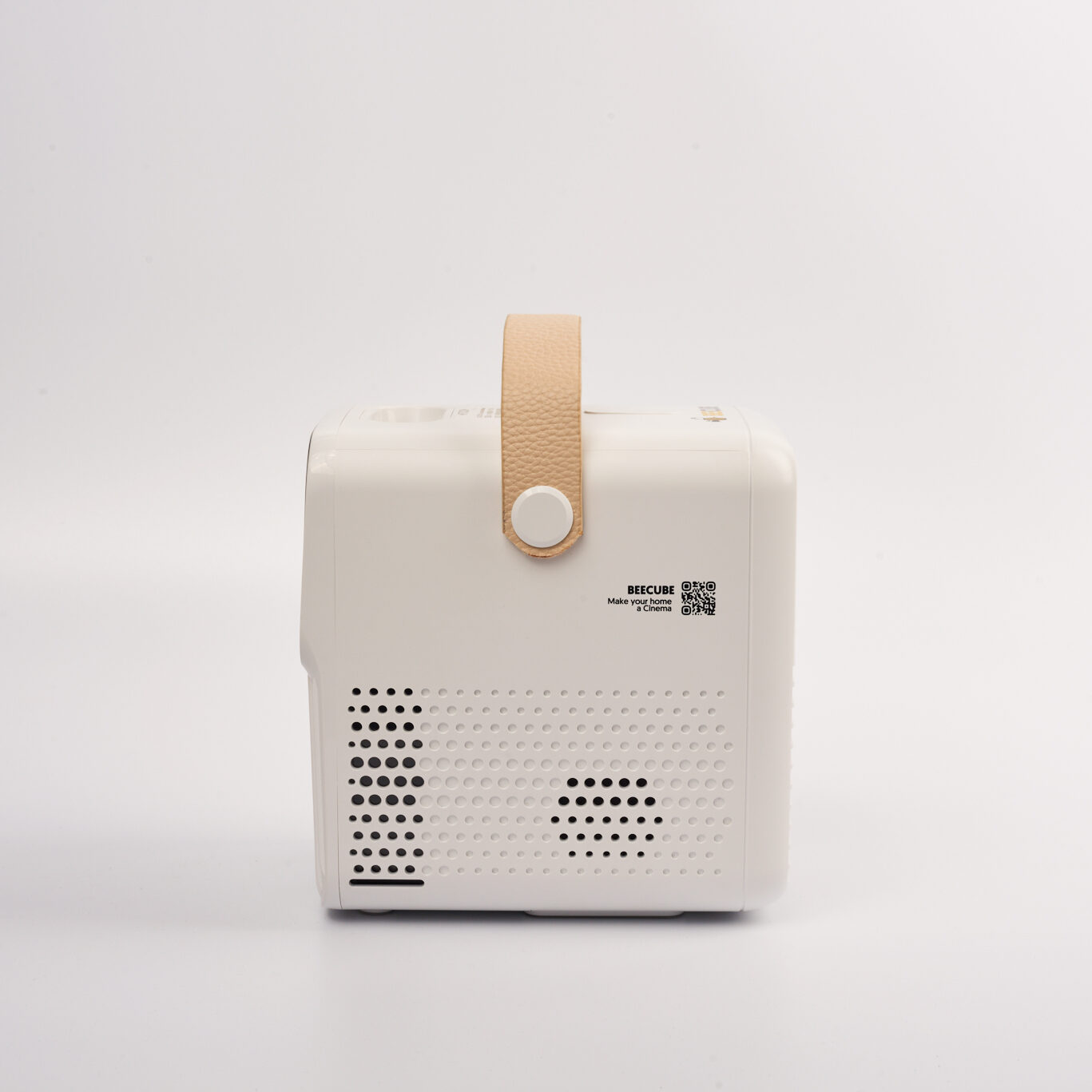 Máy chiếu mini Beecube X2 Max Gen 3 được thiết kế nhỏ gọn, vừa vặn trong lòng bàn tay, trọng lượng 1,1kg. Thay đổi thời thượng hơn với tông màu đen trắng cực sang trọng, thể hiện sự mạnh mẽ, nam tính cùng quai xách bằng da chắc chắn, rất tiện lợi để mang đi bất cứ nơi đâu.