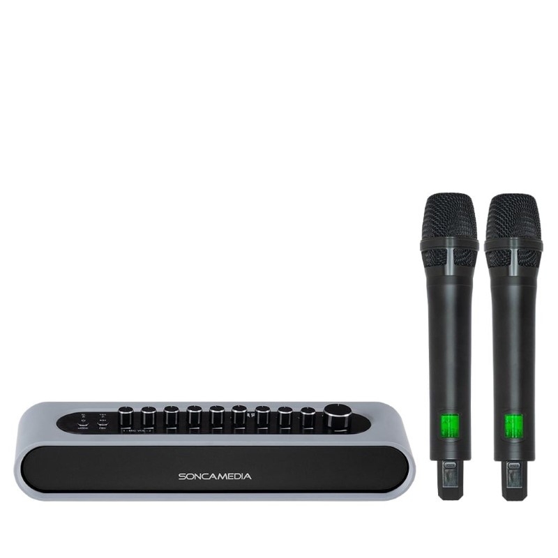 Soncamedia Mi36 sở hữu thiết kế nhỏ gọn nhưng chắc chắn, dễ bố trí trong không gian gia đình hoặc mang theo khi di chuyển. Hộp thu kiêm vang số DSP được hoàn thiện từ kim loại nguyên khối, tăng độ bền và khả năng bảo vệ linh kiện bên trong.