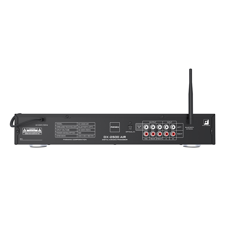 Kết hợp với công nghệ giải mã âm thanh đỉnh cao, Mixer Paramax DX 2500 Air truyền tải âm thanh trung thực, độ sáng cao, nhạc nền và giọng hát hòa quyện điêu luyện với nhau, giúp người dùng dễ dàng kiểm soát giọng hát của chính mình.