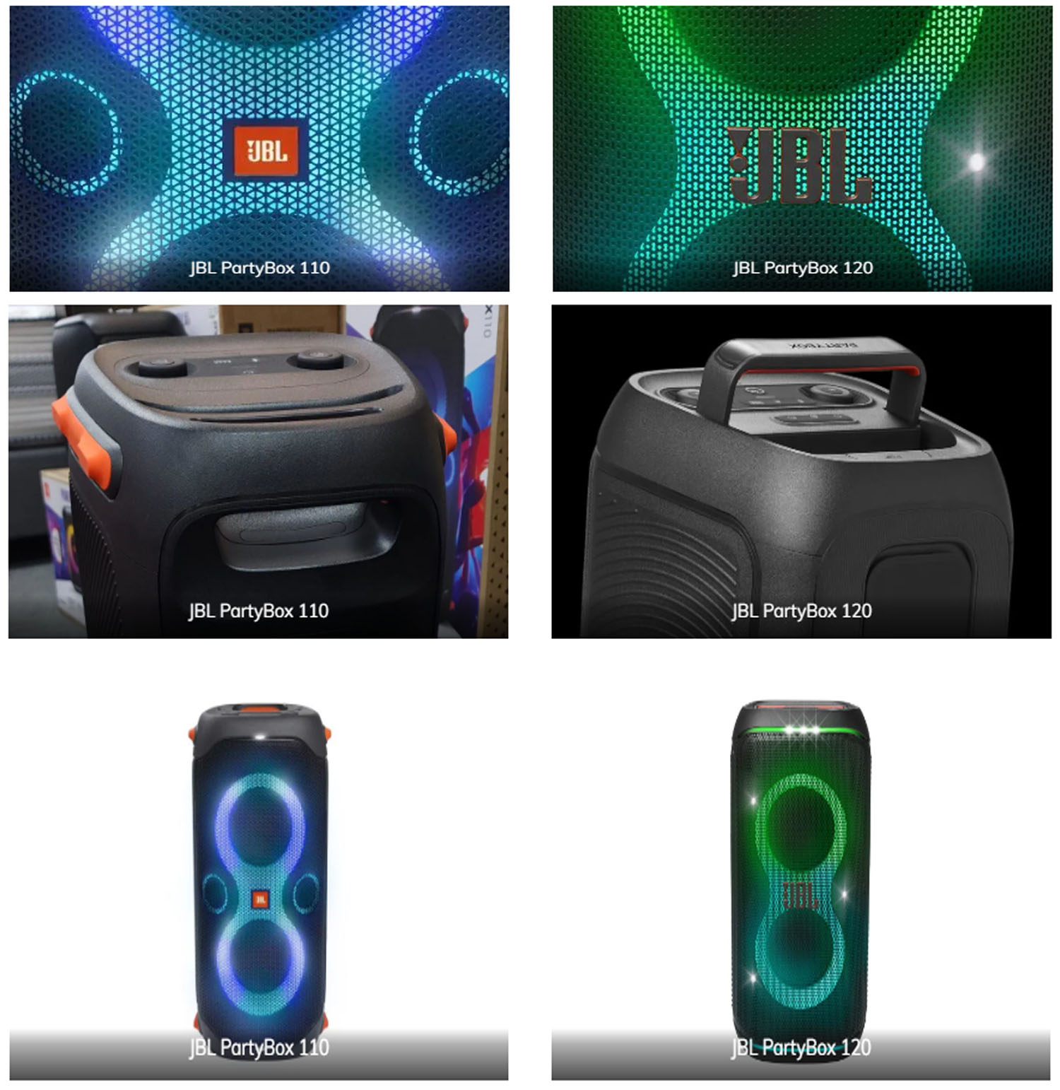 Dù JBL PartyBox 120 và 110 chia sẻ nhiều đặc điểm thiết kế, nhưng những thay đổi nhỏ tạo ra sự khác biệt rõ rệt giữa hai mẫu loa này. Thay đổi lớn nhất là việc loại bỏ các chân đế ngắn ở hai bên của PartyBox 110, không còn hỗ trợ định vị cho việc đặt loa ở bên cạnh như trước. Thêm vào đó, JBL đã thay đổi vị trí loa tweeter, ảnh hưởng đến phần âm thanh.