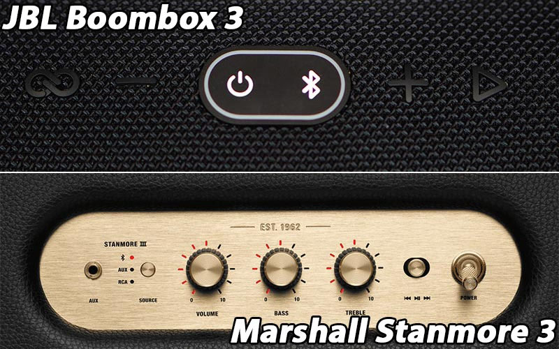 Với việc được trang bị bảng điều khiển tiện lợi nằm ở mặt trên của loa, cả hai mẫu loa bluetooth Loa Marshall Stanmore 3 và loa JBL Boombox 3 giúp người dùng có thể linh hoạt hiệu chỉnh các thông số như tăng, giảm âm lượng, chuyển hoặc dừng bài hát,.... Đặc biệt, trên mẫu loa Marshall Stanmore 3 người dùng hoàn toàn có thể điều chỉnh bass (âm trầm), treble (âm cao). Nhờ đó loa có thể phù hợp với đa dạng các nhu cầu, sở thích âm nhạc cá nhân cũng như tái hiện hoàn hảo nhiều thể loại nhạc khác nhau (trữ tình, nhạc trẻ, nhạc dance, nhạc remix, v.v.)