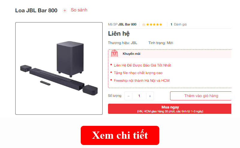 Loa JBL Bar 800 là một hệ thống âm thanh thanh mảnh, tích hợp nhiều công nghệ tiên tiến để mang lại trải nghiệm giải trí tại nhà hoàn hảo. Với thiết kế hiện đại và tinh tế, JBL Bar 800 không chỉ nâng cao vẻ đẹp cho không gian sống mà còn mang đến âm thanh sống động và mạnh mẽ. Hệ thống này hỗ trợ Dolby Atmos, giúp tạo ra âm thanh vòm 3D chân thực, và có khả năng kết nối không dây với các thiết bị khác, mang lại sự tiện lợi tối đa. Với công suất 720W và loa trầm không dây mạnh mẽ, JBL Bar 800 chắc chắn sẽ làm hài lòng những người yêu thích âm nhạc và điện ảnh.