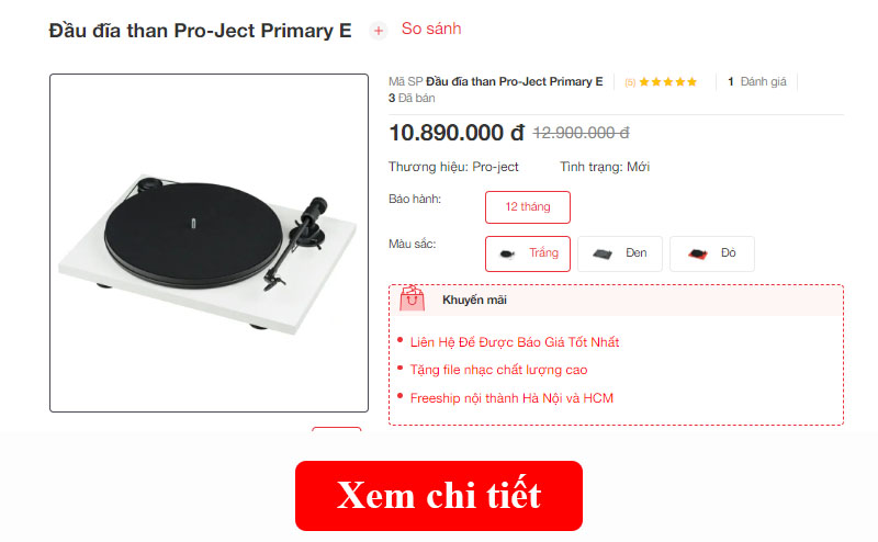 Đầu đĩa than Pro-Ject Primary E là một lựa chọn tuyệt vời cho những người yêu nhạc analog, đặc biệt là những người mới bắt đầu với đĩa vinyl. Thiết kế đơn giản và thanh lịch của nó dễ dàng hòa hợp với mọi không gian nội thất. Hệ thống truyền động bằng dây curoa và kim MM (Moving Magnet) chất lượng cao đảm bảo âm thanh trung thực và chi tiết. Primary E được thiết lập sẵn từ nhà máy, cho phép người dùng dễ dàng bắt đầu thưởng thức âm nhạc mà không cần hiệu chỉnh phức tạp. Với hai tốc độ quay (33 1/3 và 45 RPM), đầu đĩa này phù hợp với hầu hết các loại đĩa vinyl. Nhờ vào chất lượng âm thanh tuyệt vời và thiết kế thân thiện với người dùng, Pro-Ject Primary E là lựa chọn lý tưởng cho những ai muốn khám phá thế giới âm nhạc analog một cách đơn giản và hiệu quả.