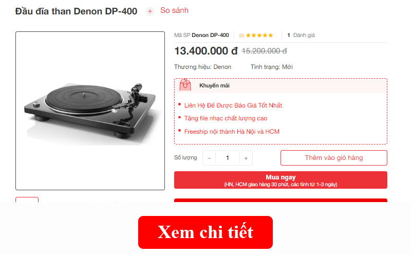 Đầu đĩa than Denon DP-400 là một thiết bị cao cấp dành cho những người yêu thích âm nhạc analog, kết hợp giữa thiết kế sang trọng và công nghệ hiện đại. Hệ thống truyền động bằng dây curoa cùng kim MM (Moving Magnet) cao cấp đảm bảo âm thanh trung thực và mượt mà. Đầu đĩa này hỗ trợ ba tốc độ quay (33 1/3, 45, và 78 RPM), phù hợp với mọi loại đĩa vinyl. Đặc biệt, DP-400 có tính năng tự động dừng và nâng tay cần sau khi hết đĩa, bảo vệ đĩa và kim một cách hiệu quả. Thiết kế chắc chắn với chân đế giảm rung chấn giúp cải thiện chất lượng âm thanh tổng thể. Tích hợp sẵn preamp phono cho phép kết nối trực tiếp với bất kỳ hệ thống âm thanh nào mà không cần thiết bị bổ sung. Denon DP-400 là lựa chọn hoàn hảo cho những ai muốn tận hưởng âm nhạc analog với chất lượng cao và tiện lợi.