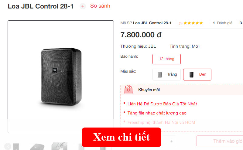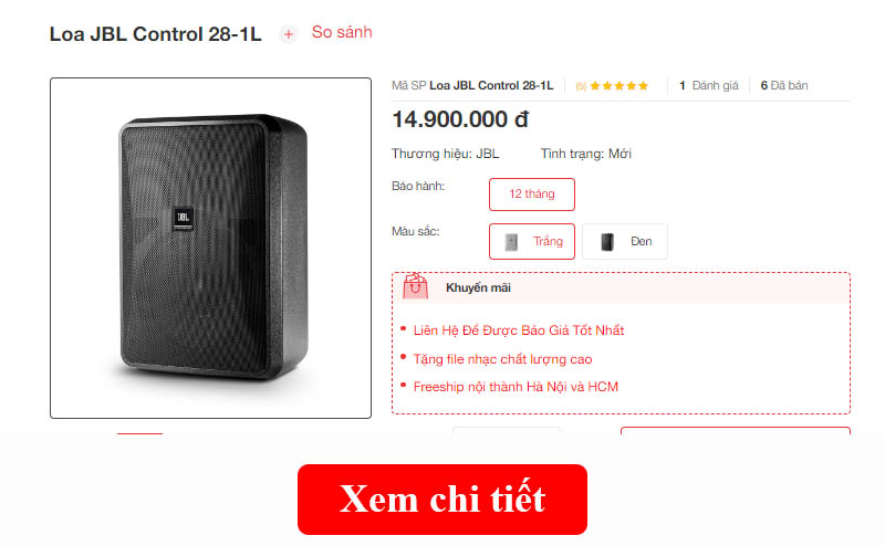 Loa JBL Control 28-1 là sự lựa chọn hoàn hảo cho quán cafe nhờ thiết kế mạnh mẽ và âm thanh chất lượng cao. Với củ loa 8 inch và công suất 120W, Control 28-1 mang lại âm thanh sống động, rõ ràng và chi tiết, phù hợp với không gian rộng lớn. Vỏ loa chống nước và chống bụi giúp loa hoạt động bền bỉ trong nhiều điều kiện môi trường khác nhau. Thiết kế linh hoạt với hệ thống giá treo dễ dàng lắp đặt, JBL Control 28-1 đảm bảo mang đến trải nghiệm âm nhạc tuyệt vời, nâng cao không gian và thu hút khách hàng.