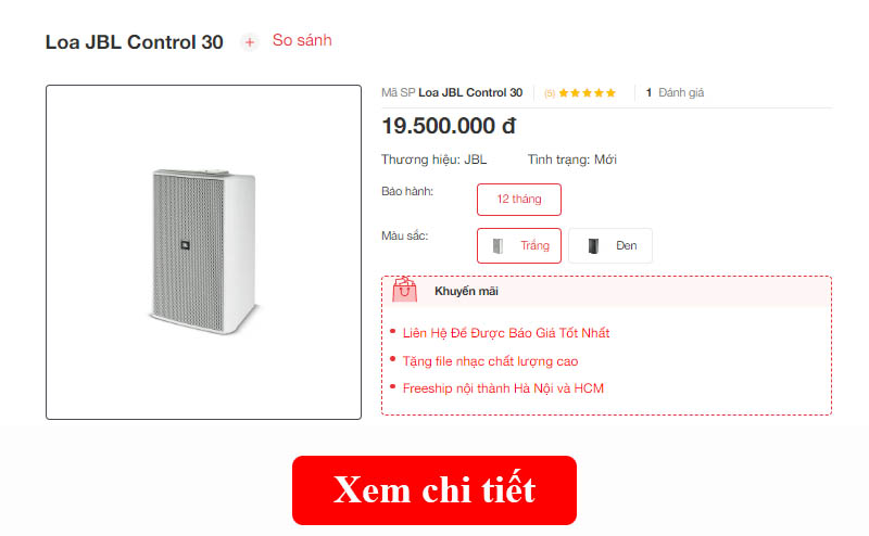Loa JBL Control 30 là một sự kết hợp hoàn hảo giữa hiệu suất và độ bền, được thiết kế đặc biệt cho các ứng dụng âm thanh ngoại trời và thương mại. Với thiết kế chống thấm nước và khả năng chịu đựng môi trường khắc nghiệt, Control 30 đảm bảo rằng âm nhạc sẽ vẫn phát sóng mạnh mẽ và rõ ràng dù bất kỳ điều kiện thời tiết nào. Với loa woofer 10 inch và loa tweeter màng nhôm, nó tái tạo âm thanh sắc nét và mạnh mẽ, phù hợp cho việc phát thanh và nghe nhạc. Control 30 cũng được thiết kế để dễ dàng lắp đặt và vận hành, là sự lựa chọn lý tưởng cho các không gian như quán cafe, nhà hàng, hoặc khu vui chơi giải trí.