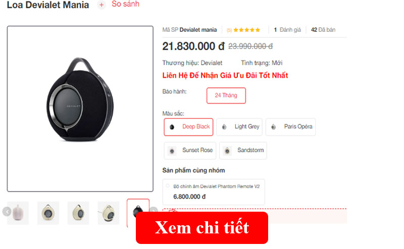Devialet Mania là mẫu loa bluetooth di động tiên tiến nhất hiện nay được tích hợp công nghệ âm thanh nổi Devialet 360 độ mở rộng, đong đầy cảm xúc người nghe, Ngoài ra, loa còn được trang bị chuẩn chống nước IPX4 và quai cầm tiện lợi cho những chuyến du lịch, nghỉ dưỡng. Nó được thiết kế sang trọng, đẳng cấp và để lại ấn tượng sâu sắc cho bất kỳ ai từng nghe từng nhìn thấy sản phẩm.