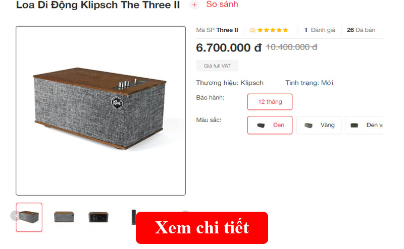 Loa Di Động Klipsch The Three II có thiết kế hiện đại trẻ trung, núm xoay điều chỉnh được làm bằng titan, phần ê căng vải với thiết kế mới với các hoa văn xen kẽ ấn tượng, công suất 120W mạnh mẽ, chất âm hoàn hảo, kết nối có dây đơn giản, tích hợp bluetooth 4.2 tiện lợi, có đi kèm điều khiển từ xa đảm bảo đây sẽ là một sản phẩm độc đáo về ngoại hình cùng chất lượng âm thanh tuyệt vời đáng để bạn sử dụng và sưu tầm.