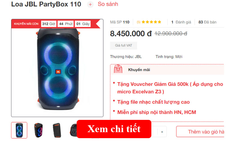 JBL PartyBox 110, một mẫu loa bluetooth di động độc đáo, được trang bị đèn LED kiểu mới và âm thanh JBL Original Pro mạnh mẽ, chi tiết. Với nhiều công nghệ tiên tiến như bluetooth 5.1, pin 12 giờ, chống nước IPX4, True Wireless Stereo… JBL PartyBox 110 mang đến trải nghiệm giải trí tuyệt vời ở bất kỳ đâu, từ trong nhà cho đến ngoài trời hay những bữa tiệc sôi động của bạn. Không chỉ dừng lại ở trải nghiệm nghe nhạc, với cổng micro và nhạc cụ tích hợp, JBL PartyBox 110 còn giúp bạn trải nghiệm biểu diễn, hát karaoke online một cách hoàn hảo. JBL PartyBox 110 - sự lựa chọn hoàn hảo cho những ai yêu thích âm nhạc và giải trí.
